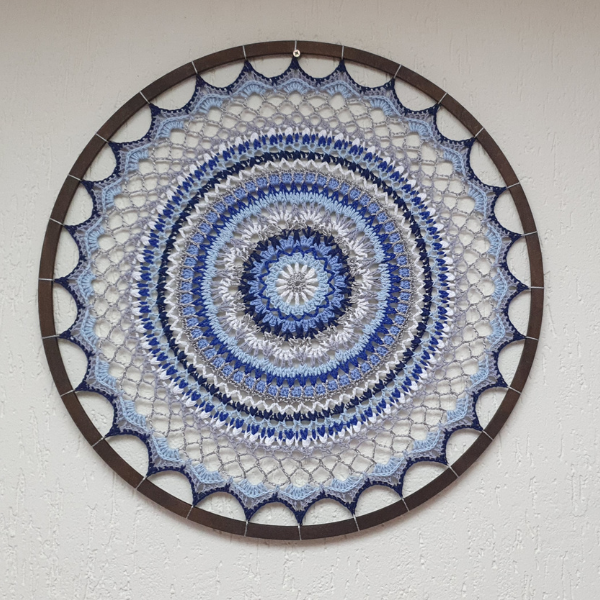 Mandala em crochê, 48cm, com aro em MDF e fio de algadão.